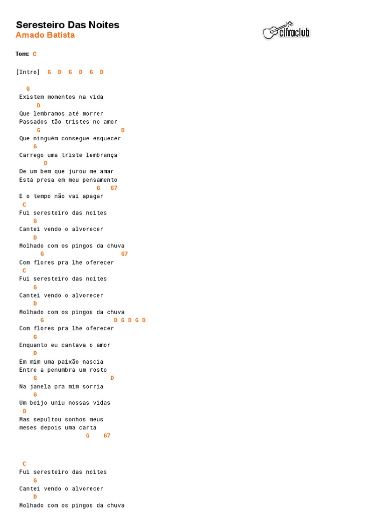 Veja as letras de amado batista e ouça folha seca, meu ex amor, no hospital, princesa, secretária, seresteiro das noites e muito mais músicas! Por teu pão e tua casa foi que eu fiquei. Como se me conhecesse ela me contou, seu. Como se me conhecesse ela me contou, seu passado de aventura onde ela passou, e eu sem nem um preconceito, com amor lhe aceitei, um mês e pouco mais tarde, com ela me casei. Simone & simaria) de amado batista, música para ouvir com letra, tradução e vídeo no kboing.
